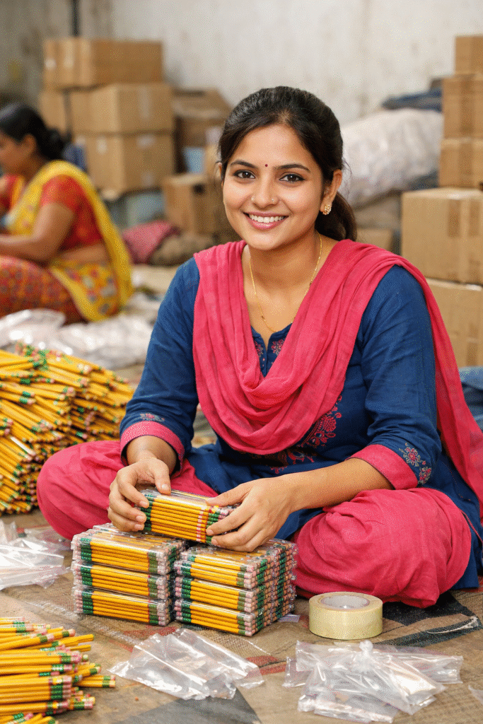 📌 पेंसिल पैकिंग का काम